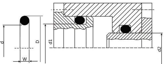 密封圈的成形填料按工作原理可分為擠壓型密封圈及唇形密封圈兩類O型密封圈是屬于擠壓型密封圈,它靠密封圈受到安裝溝槽的預壓縮作用,在摩擦面上產生初始接觸壓力而獲得預密封效果當受到介質壓力作用后產生自緊作用,其摩擦面接觸壓力數值上升,就起到增強密封效果。