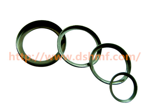 因此無骨架油封一般使用在大型、重型旋轉軸上,主要密封油、脂、水等各種流體。由于該型油封的肩部無骨架較軟,一般為橡膠夾雜物,唇部為聚四佛乙烯+橡膠,則該型油封唇口比普通油封許用線速度更高,但安裝時需在其肩部加上函蓋,用螺釘使之與腔體鏈接。