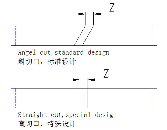 斜切口是常用的切口方式。也可提供直切口。 | ||