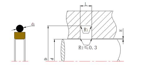 軸徑d h9 | 溝槽底徑D H9 | 槽寬L +0.2 | 0型圈線徑d1 | R1≤ |