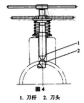 圖3所示為液壓缸缸筒,缸筒上的螺紋孔常安排在工序之后加工,這樣就不可避免地要在螺紋孔出口與缸筒內壁的交界處產生毛刺。為除毛刺,設計制做專用對其進行加工,達到光滑過渡的目的。專用的結構見圖4。使用時,先將刀桿從螺紋孔中插人,然后從側面將刀頭安裝在刀桿上,旋轉刀桿即可將毛刺除掉并加工出光滑完整的表面。