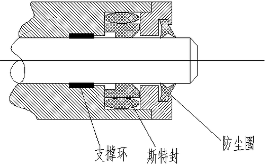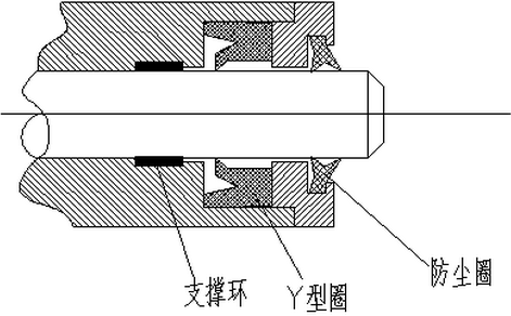 同活塞一樣,活塞桿處密封使用Y形圈密封件產品也比較多,活塞使用孔用Yx型密封圈產品,這里使用軸用Yx型密封圈產品,該處密封常有形式是支撐環加Yx形密封圈加防塵圈,支撐環安裝在液壓缸端蓋內側,主要作用是支撐活塞桿;防止活塞桿不垂直受力給桿密封件產品帶來的承壓不均勻造成的密封件產品的密封效果差和使用壽命短等作用。 同活塞上導向帶一樣,活塞導向帶和活塞桿支撐環的使用壽命直接影響到活塞桿密封件產品的使用效果與壽命,所以對導向帶和支撐環的要求也較高,比如摩擦系數小,硬度高,使用壽命長等。