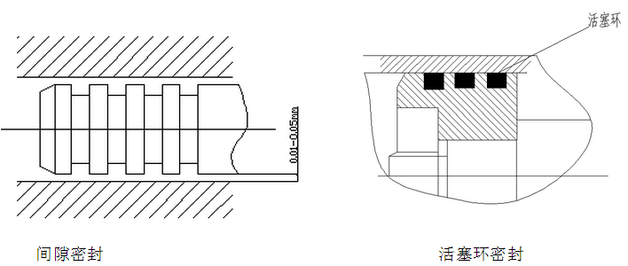 間隙密封是一種常用的密封方法,它依靠相對(duì)運(yùn)動(dòng)零件配合面間的微小間隙來(lái)防止泄露。一般間隙為0.01-0.05mm。間隙密封在活塞的外圓表面一般還開幾道寬0.3-0.5mm、深0.5-1mm、間距2-5mm環(huán)形溝槽,也稱平衡槽。主要作用是減少?gòu)较蚩ňo力和自潤(rùn)滑功能。間隙密封簡(jiǎn)單,不用任何密封件,摩擦力小,但對(duì)零件加工精度要求高,不能完全阻止泄漏,且密封性不能隨壓力升高而提高,只適用于直徑較小,壓力較低,速度較快,密封性能不是很高的環(huán)境,如換向閥、液壓泵(柱塞泵)、液壓馬達(dá)、小直徑快速缸等。