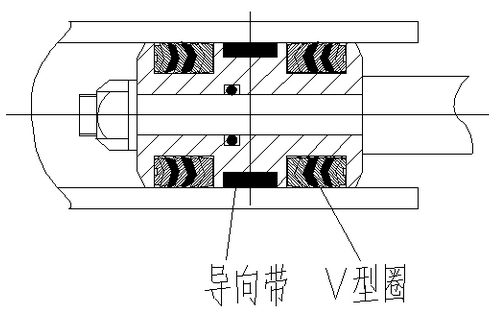 圖中即為7組V型圈的密封形式,2只V型圈加1只導(dǎo)向帶結(jié)構(gòu)。