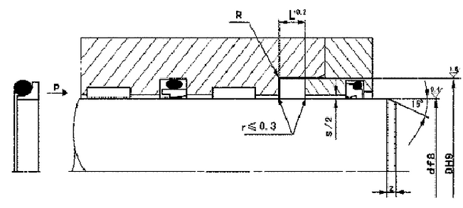 具有一定預壓縮的O形密封圈給薄唇的滑環一個預壓緊力-“抱緊力”,使滑環密封唇緊緊貼合在被密封表面。因此,即使在微壓甚至零壓下,也具有良好的密封性。當耐磨性強的PTFE密封環長期工作形成磨損后,O形密封圈提供的彈力能使薄唇的滑環產生足夠的變形以補償極其細微的磨損量。因此,直角密封具有普通滑環式組合密封(通常指斯特封、格來圈)所不具備的自動補償功能。