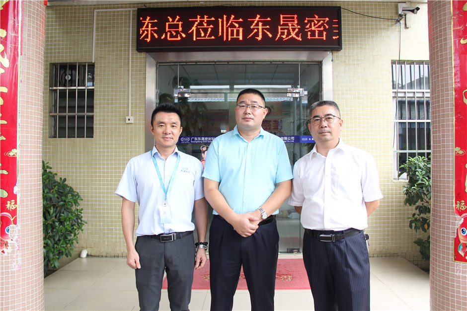 8月31日,東莞五金行業(yè)杜總一行人蒞臨東晟密封科技有限公司指導工作,胡燕林總經理代表東晟公司全體人員熱烈歡迎杜總一行人的到來。