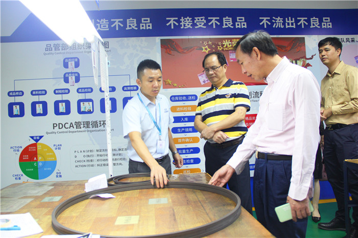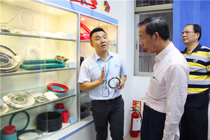 參觀完展示廳之后,胡燕林先生帶這領導們來到公司的生產車間巡視一番,整潔的辦公環境與高速的工作效率,一件密封件從材料到成型再到品質檢驗,一套工作流程下來,行如流水潤物細無聲。
