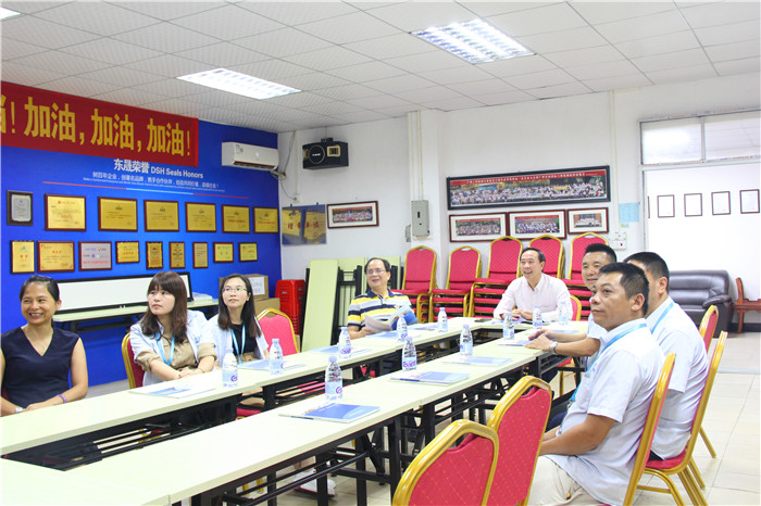 雙方簡短的寒暄了一番之后,由胡燕林先生做起了東晟密封的導游,帶領著石碣鎮政府的各位領導去到公司的各個部門視察。
