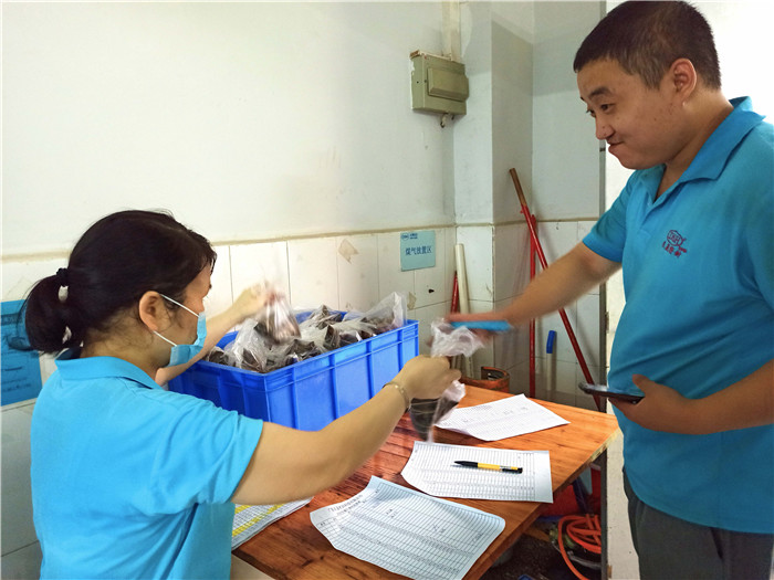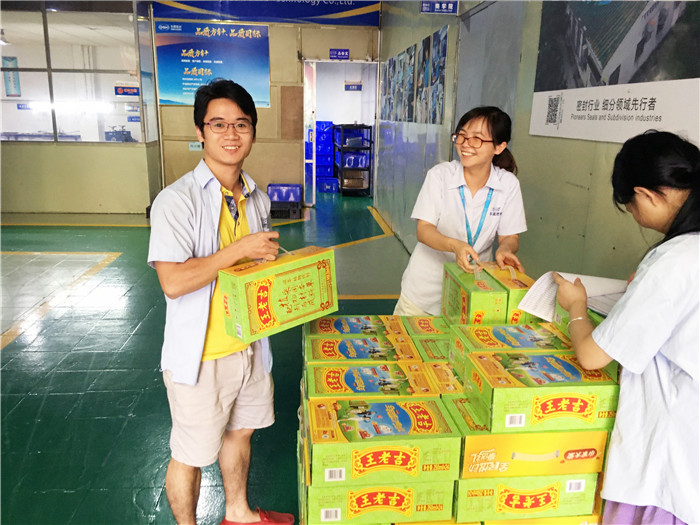 臨近下班,員工們有秩序的在拿取,東晟密封為他們而準備的消暑飲品與端午粽子。